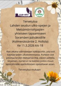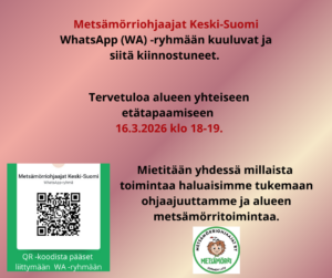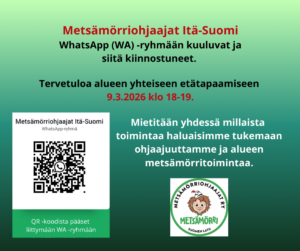 Jos sinulla on tiedossa paikkakunta, jossa kaivattaisiin metsämörriohjaajien tapaamista niin vinkkaa siitä meille sähköpostitse metsamorri.ohjaajat@gmail.com